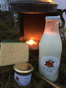 Bakom lucka 22 hittar vi Skålldals lilla eko mejeri. ”I gårdsbutiken finns vår mjölk som man själv tappar upp från mjölkautomaten , vi tillverkar ost och yoghurt, har honung från våra bin, kött och korv från våra djur.”