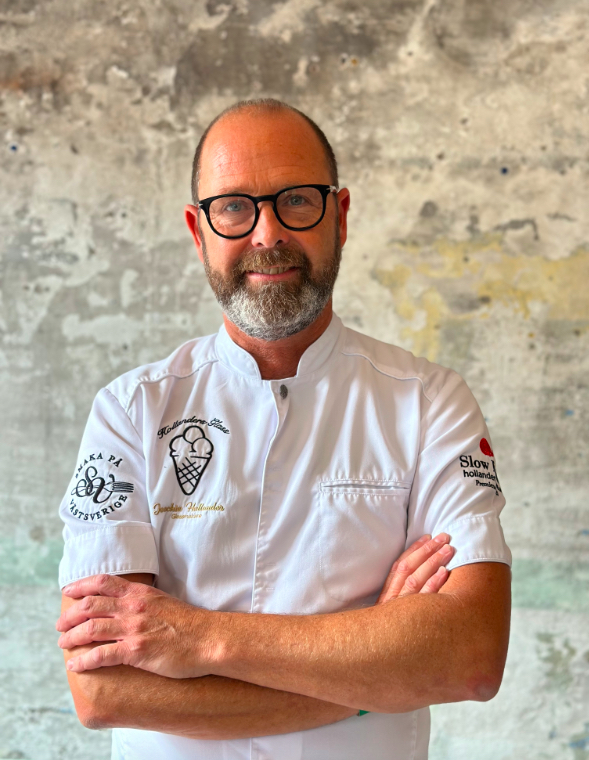Min passion ligger i att ta fram äkta, ibland lite oväntade smaker från lokala råvaror. Jag känner en stolthet över mitt samarbete med lokala bönder, odlare och mathantverkare. Min glass innehåller oftast ekologiska råvaror men har ingen certifiering varför den inte klassas som ekologisk.
